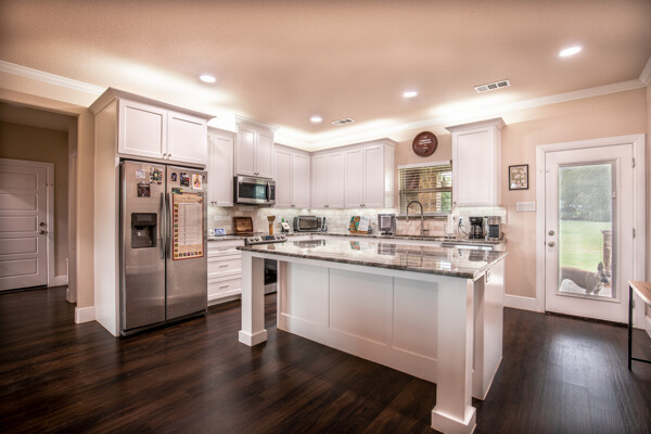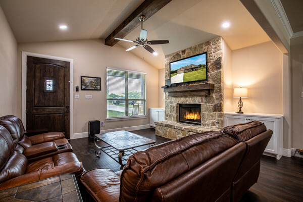 This charming home is set on nearly an acre of land and features an inviting open-concept layout. The living room impresses with its vaulted ceiling, recessed LED lighting, and a custom rock gas fireplace with a wood mantle, flanked by built-in cabinets. The oversized kitchen is a chef’s dream, showcasing a large 3x6 ft eat-in island, a walk-in pantry, stainless steel appliances, an undermount farm sink, and ample granite countertops and cabinetry—perfect for gatherings and culinary creativity. The home also boasts custom cabinetry and granite surfaces throughout, along with high ceilings. The primary suite offers a spacious ensuite bathroom and a generous 12x6 ft walk-in closet. Additionally, there’s a mudroom and a large laundry area. Enjoy a morning coffee on the 30x4 ft front porch or unwind on the 16x9 ft covered back porch, which features decorative lighting and a wood-burning fireplace. Ask about $0 down options and low interest rates! Call today to schedule a tour.